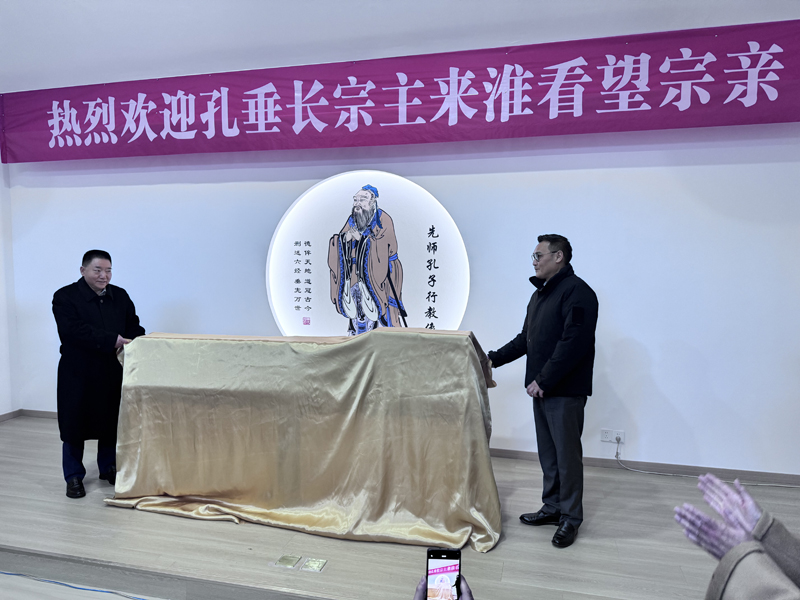 活動(dòng)之前,孔垂長與孔令發(fā)共同為《孔子世家譜·淮北卷》及“孔子學(xué)堂”孔子像揭幕,象征家族文脈與儒家精神代代相傳。