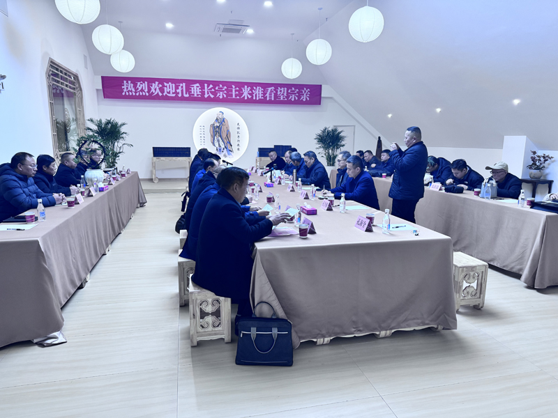 當(dāng)日下午,安徽孔子后裔聯(lián)誼會(huì)淮北分會(huì)在中泰商場五樓孔子學(xué)堂召開歡迎孔垂長宗主來淮看望宗親座談會(huì),30余位宗親代表圍繞家譜續(xù)修、文化傳承等議題深入交流。