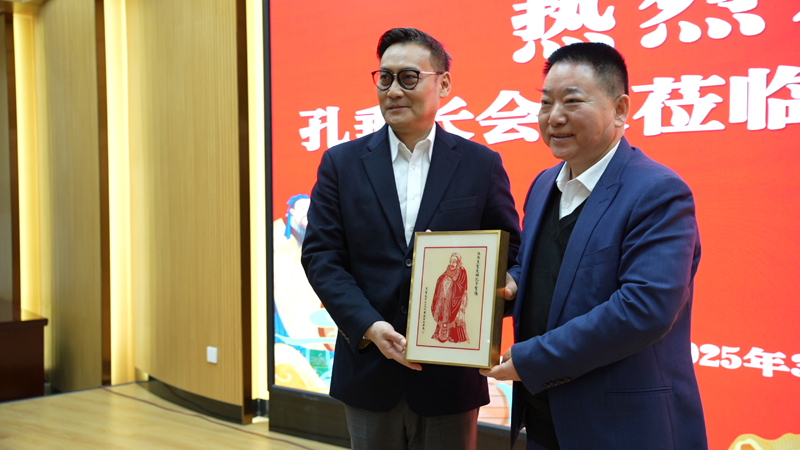 孔垂長會(huì)長向孔令發(fā)董事長贈(zèng)送《至圣先師象》
