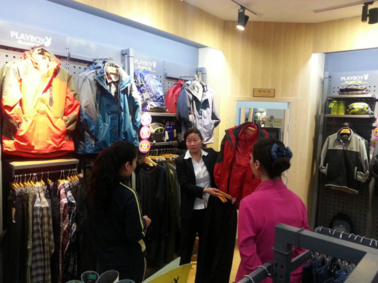 四樓商場劉紅經理現場指導營業員服裝銷售搭配