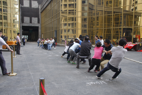 集團(tuán)機(jī)關(guān)代表隊(duì)與中泰代表隊(duì)正在進(jìn)行緊張刺激的拔河比賽