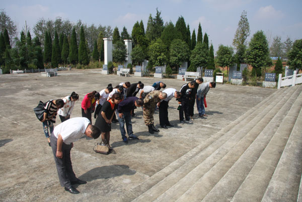 值中華民族抗戰勝利70周年之際,在國慶節期間的10月5日上午,天象集團副總裁、黨委書記陶靜春在副書記李杰、王安慧的陪同下前住安徽固鎮縣任橋鎮清涼村淮北西大門抗日烈士陵園參觀。集團公司近20名黨員參加了此次活動。