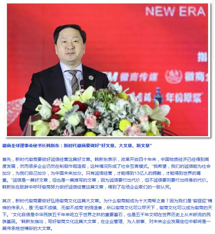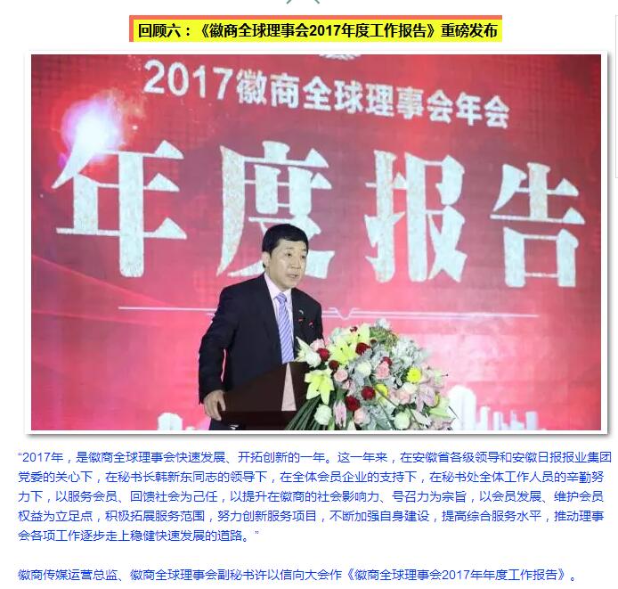 11月25日,以“新時代新擔當 新創造新未來”為主題的2017徽商全球理事會年會迎來第二天的精彩議程,在前一天的“徽商發展高峰論壇”“徽商投資考察安慶行”等環節之后,今天上午的議程更加凸顯了“徽商全球理事會”平臺作為“徽商優質資源整合者”的服務理念、資源優勢和責任擔當。