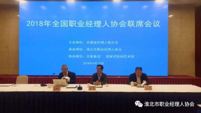 2018年全國職業(yè)經(jīng)理人協(xié)會聯(lián)席會議暨淮北市工商聯(lián)招商推介會于4月13日~14日在淮北市口子國際大酒店圓滿結(jié)束。本次會議是安徽省經(jīng)理人聯(lián)合會主辦、淮北市職業(yè)經(jīng)理人協(xié)會承辦、天象集團協(xié)辦的全國性會議。淮北職業(yè)經(jīng)理人協(xié)會會長、天象集團董事長孔令發(fā)出席會議并致辭。